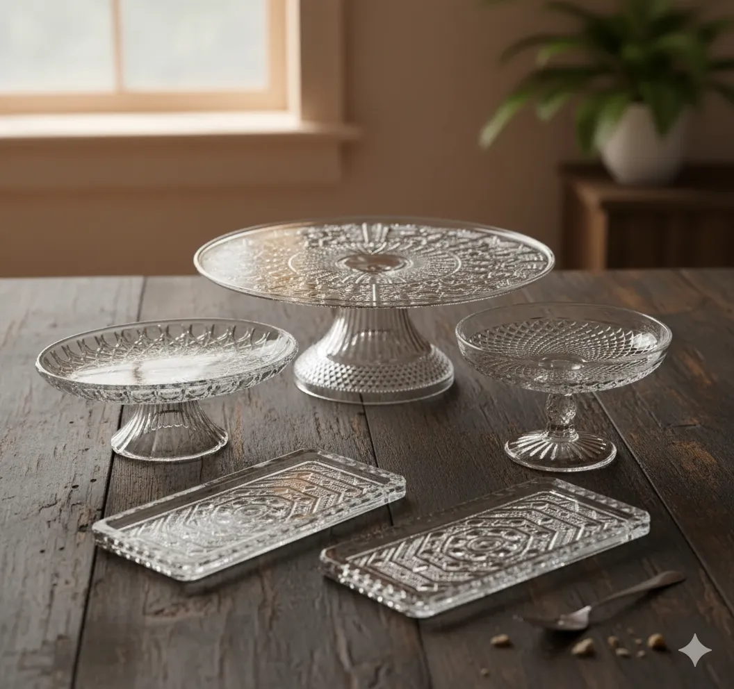 Transforme a apresentação dos seus doces e composições em uma verdadeira experiência visual com este elegante kit de peças em vidro trabalhado. Desenvolvido para quem valoriza sofisticação nos mínimos detalhes, o conjunto combina design clássico com acabamento refinado, criando uma estética atemporal que se adapta perfeitamente a diferentes estilos de decoração.